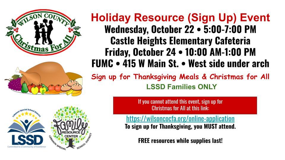 Holiday Resource (Sign Up) Event Sign up for Thanksgiving meals and Christmas for AllLSSD Families Only